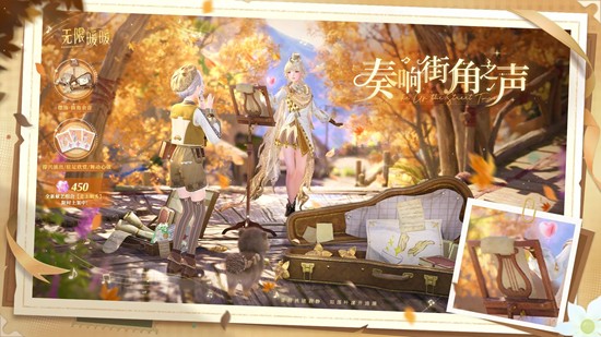 ● 花费450钻石即可获得:摆饰【街角余音】、双人动作【即兴演出】!更附带赠送单人动作【驻足欣赏】【舞动心弦】