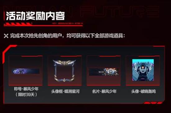 完成本次抢先创角的用户,均可获得以下全部游戏道具: