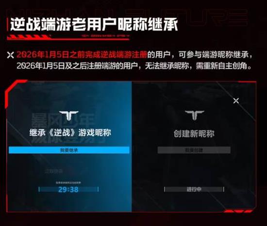 逆战未来无法直接继承旧端游的装备、等级、仓库道具等核心数据,官方将其定义为全新赛季制作品,老兵需从零开始征战。但官方同步推出“老兵回归福利”:只要在活动页绑定旧端游曾使用的QQ号,即可领取限定称号、纪念武器皮肤与专属头像框,账号注册时长越久奖励越丰厚,此福利仅限国服首次创角时领取一次。