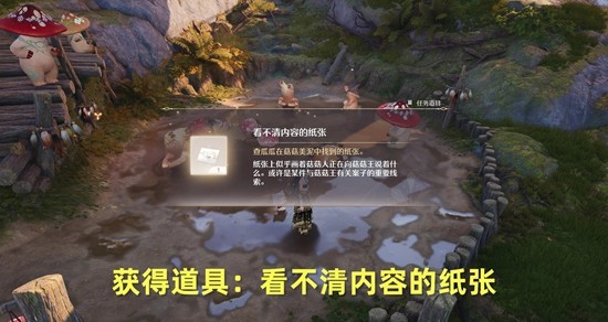 对完话后,任务完成,得到任务道具:看不清内容的纸张;