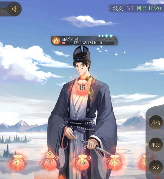 半血后的回合,阳属性密探先下拉,敌方身上没有红包后,谨和诞再输出