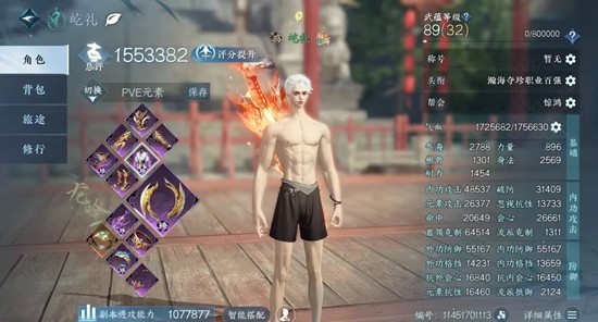 面板:满命中17086,满忽视15592,命中和忽视越高越好,会心站街2.4w以上,入战2.6w以上,元素攻击2.6w以上