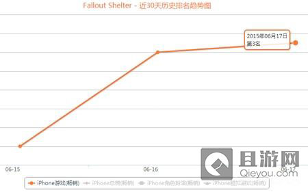 6月18日消息,在2015年E3的展前会上,Bethesda发布了《辐射》手游《辐射:避难所(Fallout Shelter)》,目前在美国iOS免费榜游戏类别第一名、畅销榜第三名。在中国区iOS免费榜游戏类别第四名。