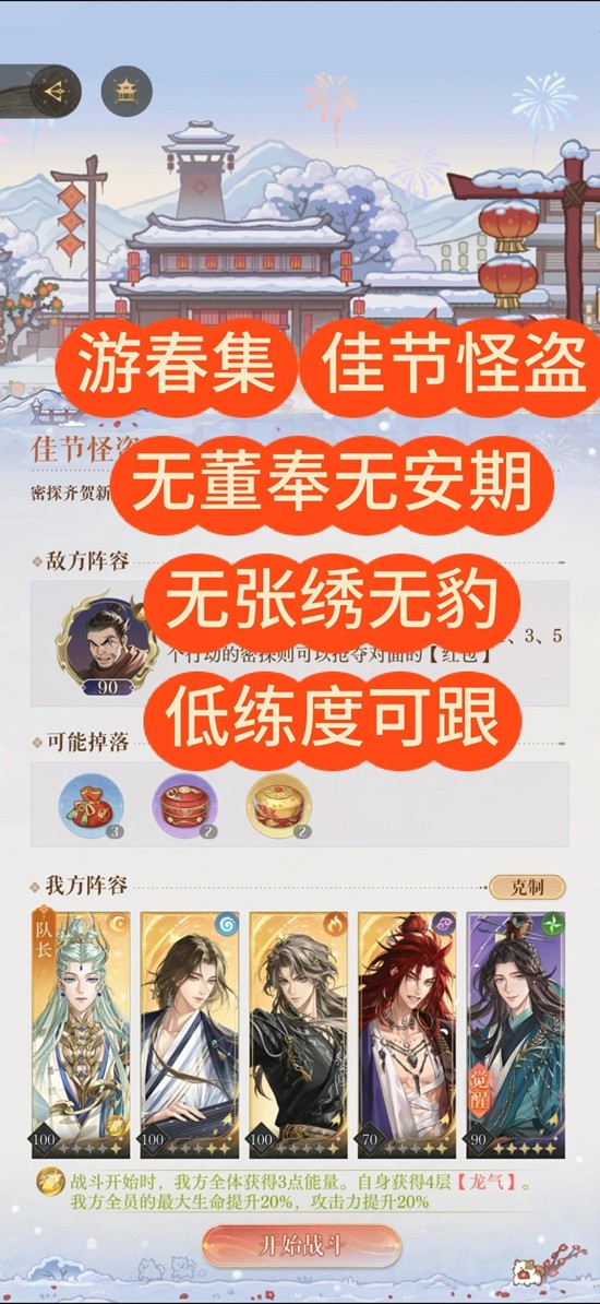 以上就是如鸢游春集佳节怪盗攻略,佳节怪盗机制及通关思路攻略的全部内容了,更多游戏资讯,攻略内容敬请关注切游网,您的支持是我们努力的动力!