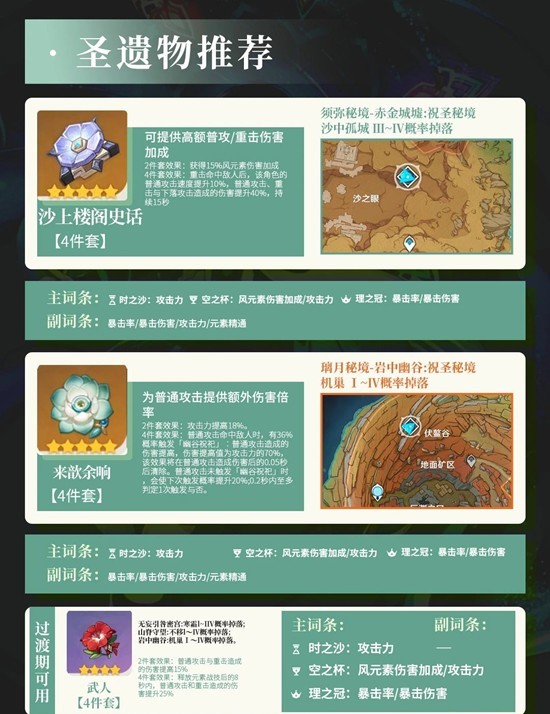 主词条:攻击沙,风伤/攻击杯,双爆头