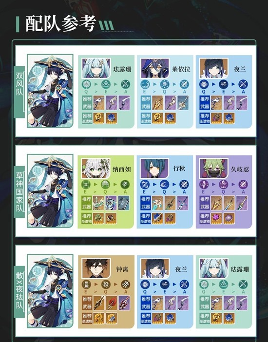 ①双风队:流浪者,珐露珊,莱依拉,夜兰
