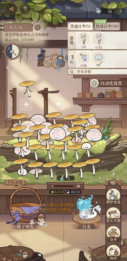 6.除了普通蘑菇 如果遇到了已经收集的特殊菌菇营养不良/过剩还是需要给药的,说不定哪天订单就要用,回头种概率很低