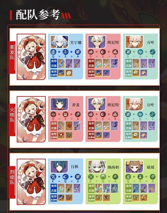 ①蒸发队:可莉,芙宁娜,班尼特,万叶
