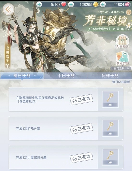 任务:包括每日、十日、特殊,3种类型的任务。第一次开启不管开的是哪套,任务都是一样的内容