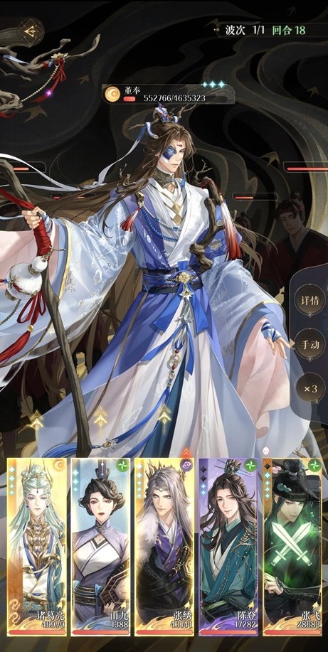 董奉退场后假病患会秒杀我方全体,这时候就需要诸葛亮的复活,之后在25回合内击败所有假病患即可