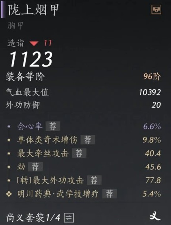 纯奶pve中三率只要会心75+,且会心肯定是会溢出的,衣服和头可以用初始词条为气血或防御的来做。如果面板中有两条小牵丝吃满天赋可以带通用武库,否则带牵丝武库就好。目前100级版本外功总和4900+是完全够用的,纯奶00在本里的奶量一定是溢出的,除非是必死的机制队友不过,否则你正常奶永远不可能出现队友噶的情况。非常不建议把资源材料全部砸在纯奶00调律上,如果你只爱纯奶00当我没说。敏不要超过三条,超过不如小牵丝。