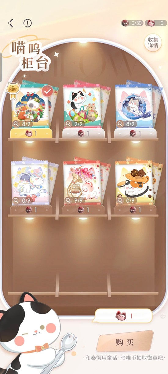 使用限定喵呜币,可在活动期间抽取「花园喵喵」系列徽章。共有8种普通款+1种隐藏款徽章等你收集!