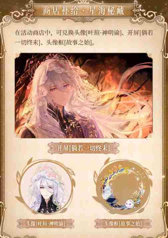 活动商店代币通过关卡首通与每日任务掉落,搬空需约3600币,可兑换头像[叶瑄·神明谕]、开屏[倘若一切终末]、头像框[故事之始],七日签到再送额外代币,确保零氪也能毕业。