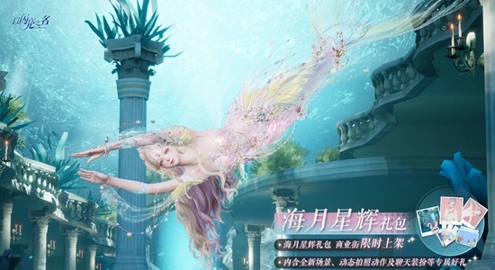 2.海月星辉复刻外观礼包:限时礼包售卖期间,合伙人可以4.6折的价格直接购买海月星辉外观礼包,内含摄像机镜头动态动作【人鱼之恋】、拍照场景【星海漫步】、拍照动作【海螺心语】、拍照运镜【人鱼之恋】、背景音乐【人鱼之恋】、聊天气泡【鱼朵朵】、潮流色卡26和遇之钥40,该礼包永久限购1次。
