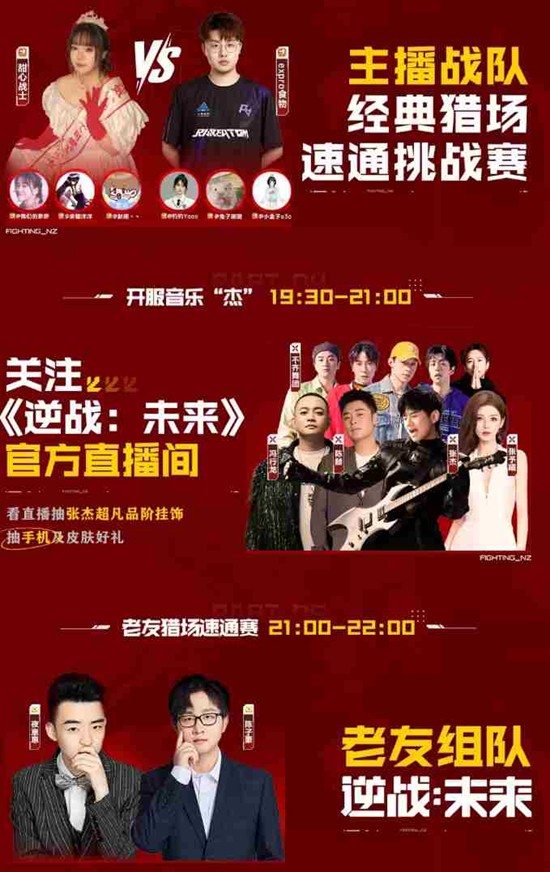 10:00-12:00猫弟、小岚娘带队预热,12:00起艺术、冻腰冻拐接力,14:00进入“陈赫带你逛开服音乐‘杰’”特别环节,17:00-19:00甜心战士队与策划上演猎场速通挑战赛,19:30-21:00张杰空降献唱主题曲并掉落超凡品阶挂饰【暴风少年】,21:00后陈子豪、夜感等老友组队速通经典副本,直至24:00收官,零点点券红包雨压轴。