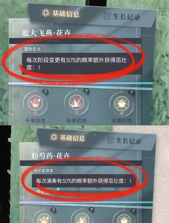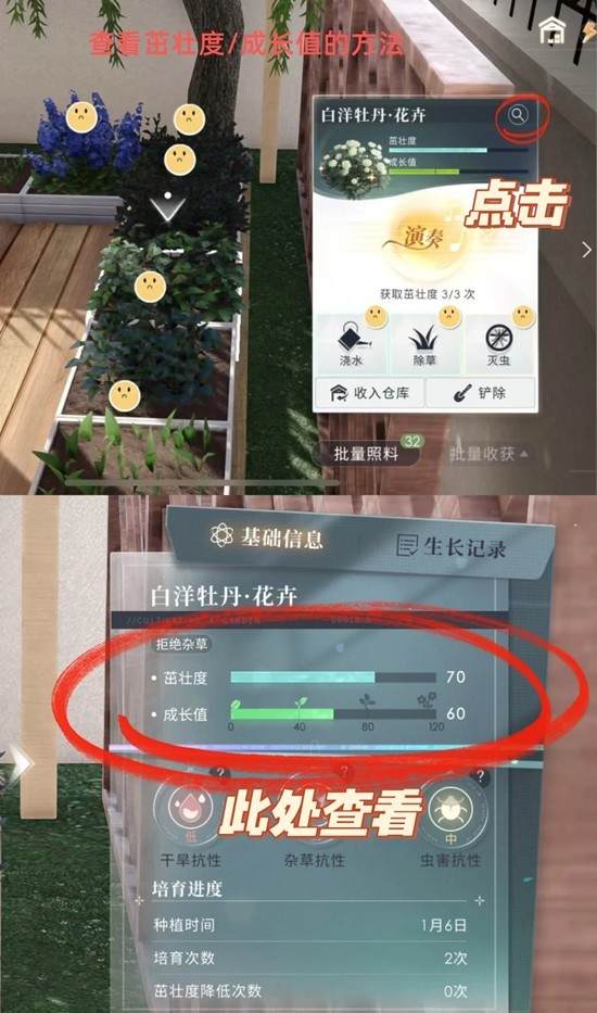 首先,我们需要分清楚植株的两个属性,一个是茁壮度,一个是成长值。
