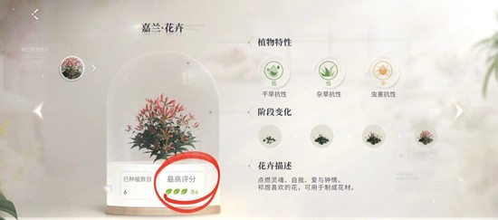 成长值的高低是影响植株成长速度,即决定这个花卉什么时候能够收获的唯一决定因素。成长值达到标准,这个植株会直接成熟被收获,达到成熟后植株的品质将无法发生变动。