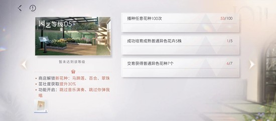 植株茁壮度提升主要通过给植株拉二胡,每个植株初始值都是70,茁壮度大于等于81,其收获时将成为3星花卉,而越高品质的花卉在进行交育时,出现稀有花种的概率越高,因此,我们要通过演奏提高花卉的品质。