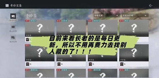 燕云十六声周年活动踏岳寻珍,游侠可以在「奇珍宝鉴」界面追踪鹳长老及其他游侠发布的「寻珍鉴」,获取宝物;也可击败不见山「深泽」、「绥乡」和「天陉」区域内的动物或敌人,将有概率拾取其随身携带的宝物。提交一定套数宝物后,游侠可向鹳长老兑换表情动作[我最棒]、题跋[定珍盘]等奖励。那么这一玩法怎么玩呢?小编为你准备了一份攻略,一起来看看吧~