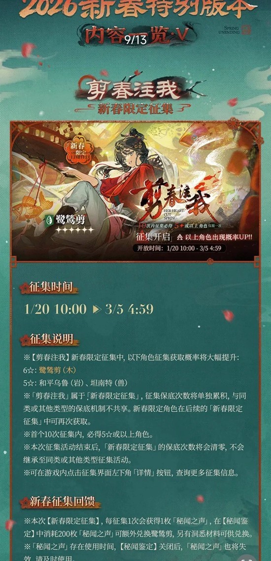 以上就是重返未来:1999不老春3.4版本,新春卡池抽取小建议的全部内容了,更多游戏资讯,攻略内容敬请关注切游网,您的支持是我们努力的动力!