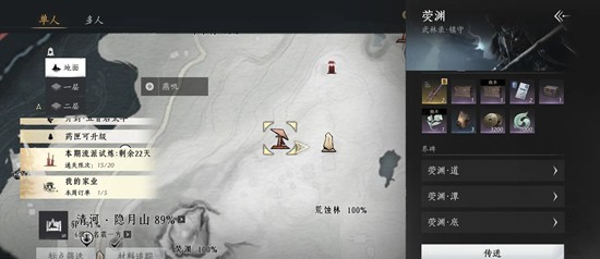 1、打开地图找到镇守标志,不要点传送,而是点镇守详情下的“荧渊·底”