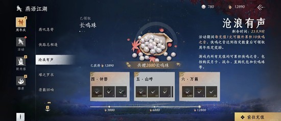 燕云十六声周年庆开启了1280限时累充沧浪有声活动~全档位充值方案对比,最高得12910长鸣玉+15062长鸣珠! 福利金抵扣算限时累充。那么如何充值能用最少钱获得最多的资源呢?小编为你准备了一份攻略,一起来看看吧~