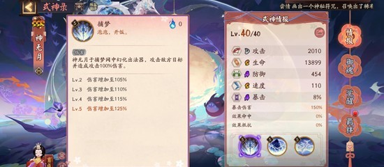 神无月每次创造幻境(用三技能),自身获得一层梦神(上限5层,每层使幻境中友方增伤18%),先机获得一层。