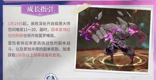 1月19日,团本首领“幻花的陈骸”将正式解锁噩梦难度!同期,极限空间·衰败深处与岩蛇巢穴也将开启大师11~20层,更高装等、更丰奖励等你挑战。幻梦赛季通行证·Ⅲ同步预热,全新时装与典藏福利即将揭晓。