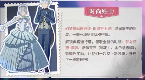 赛季通行证·Ⅲ将于近期上架,首套外观“梦与怀想”已曝光:银灰长衣+星链头饰,典藏档再送蔷薇宝石、金色意志碎片和专属传送特效,具体售价1月18日公布。
