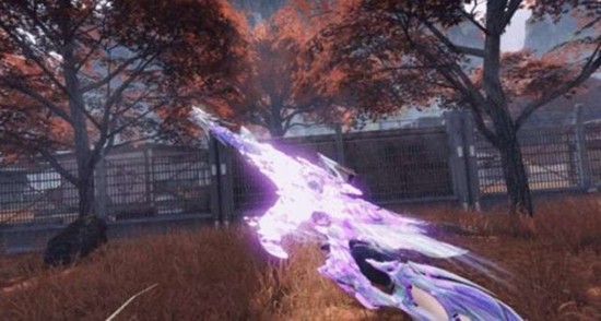 其配套的特殊处决动作同样延续了主题风格。角色会单膝跪地呈祈祷姿态,随即背后迸发出花瓣状的能量光效。旋转的羽刃高速升腾,将目标牵引至半空后骤然坠击,整个过程具备强烈的仪式节奏与视觉冲击力。