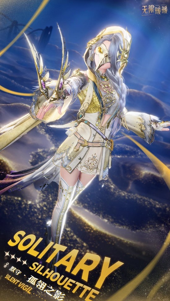 「孤翎之影」进化后为套装「孤翎之影·默守」。套装焕新完成后可获得「孤翎之影·断痕」。