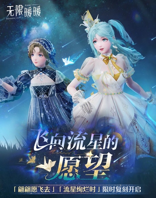 无限暖暖「飞向流星的愿望」限定共鸣复刻1月19日开启~1月19日更新后,前往「飞向流星的愿望」进行共鸣,即有机会获取5星套装「翩翩愿飞去」、4星套装「流星绚烂时」!一起来和小编看看吧~