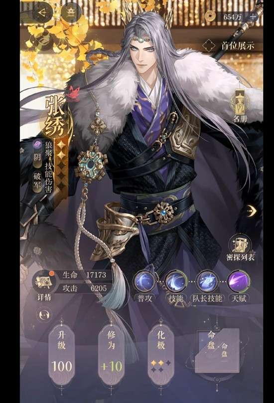 张绣必备命盘:骨饵狼犬,二星张绣主要还是加攻击,90+15的一星带好星石,漆园蝶喂满数值应该也是够的