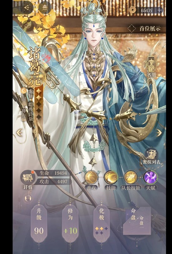 诸葛亮必备命盘:沟通天地+天命所归,二星不是刚需,因为我的诸葛亮练度并不满,如果通过等级和修为将数值加到差不多是可以的