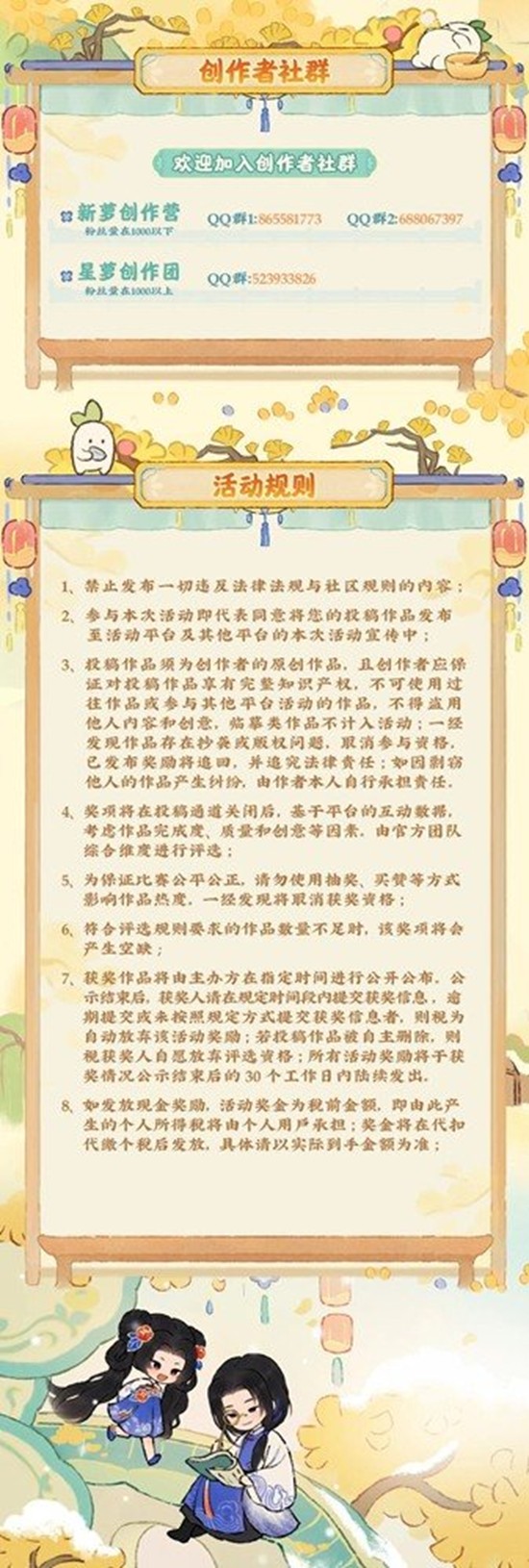 【高热内容奖】:全平台综合评选,根据单条作品数据进行评选,同一个作者可多条内容获奖奖励有总额限制,根据投稿时间先后顺序进行排序评选。