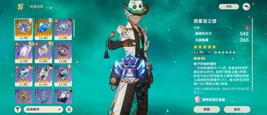 4星可选择晚星提供精通加成,并为全队提供攻击收益,也可选用祭礼提供精通,并提供E冷却重置效果;