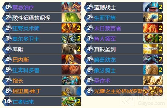 这套与以往的死鱼骑最明显的表现,就是加入了巴内斯,巴内斯除了在拉出弗丁、光螺丝稳赚的情况下,拉出4只鱼的1只也是不错,可以提高斩杀或者是避免鱼沉底亡者归来卡手的情况。