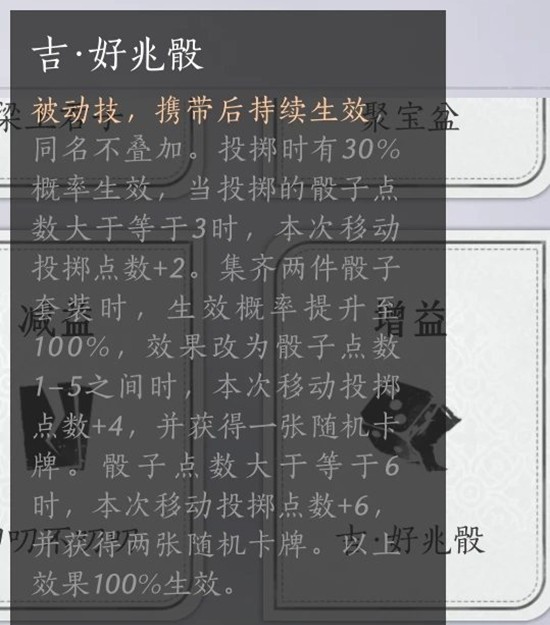 推荐购买/抓取卡牌有:阴阳迷踪步,凌云踏,吉·好兆骰,吉·好运骰