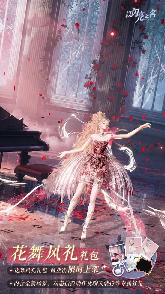 动作与运镜采用花瓣飘舞特效,场景内置可交互烛台与飘带,适合新春主题大片;背景音乐为弦乐+竖琴旋律,可在拍照、衣橱、好友聊天多界面播放。