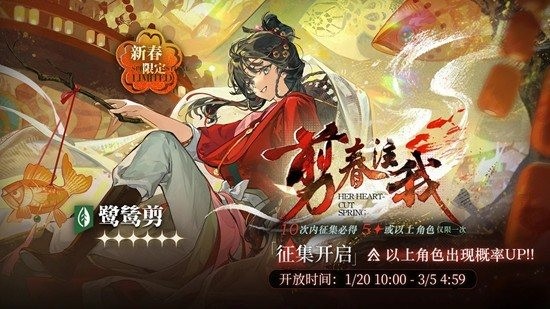 重返未来:1999角色需要通过抽卡机制“征集”获得,一个角色有着星级与属性之分。星级是角色稀有度的区分方式,角色属性分为灵、兽、木、智、星、岩。那么游戏不老春新春版本[鹭鸶剪]为新增新春限定角色,将不会加入[新春限定征集]之外的其他类型征集。那么这个角色值得抽吗,一起来看看吧~