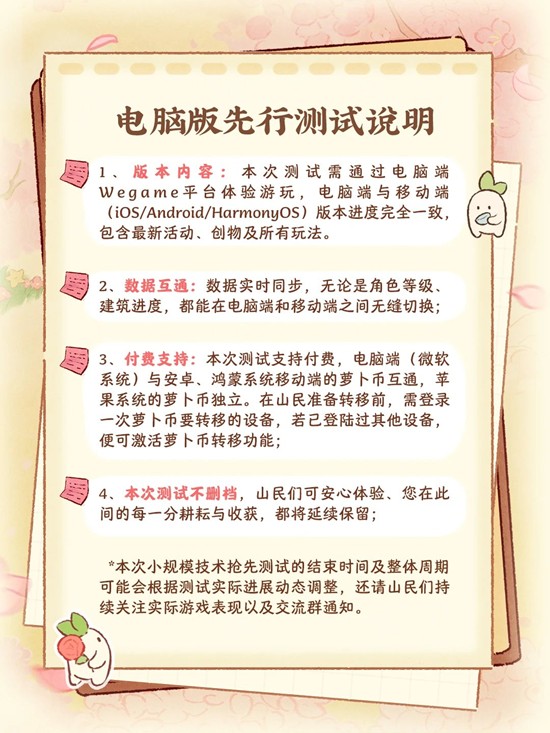 桃源深处有人家测试招募:欢迎各位山民参与本次《桃源深处有人家》电脑端测试招募报名,本次小范围测试,旨在验证游戏在电脑端环境的兼容性与运行表现。大家的每一份反馈都是我们重要的优化方向,期待与各位山民们一起打造更稳定的电脑端桃源体验。一起来和小编看看吧~