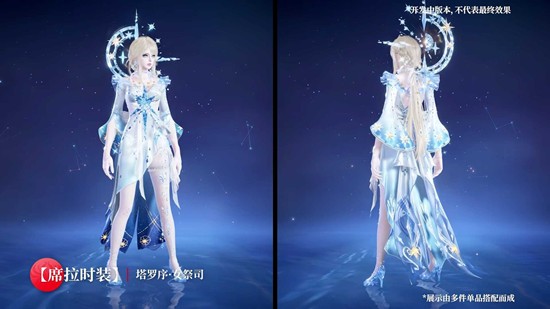 ‑冷月蓝+星银,象征“睿智与慈爱”:披风为半透星图,移动时可见十二星座依次点亮;长剑「远见圣辉」剑格镶嵌塔罗圆镜,拔剑时随机闪现0.3秒未来残影~