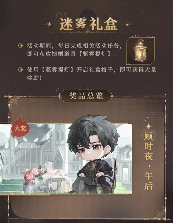 ✦1月21日维护后-2月25日03:59,完成活动任务可获得【驱雾提灯】,使用后可驱散迷雾,开启迷雾礼盒。