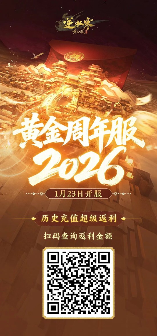 1、黄金服周年新服【2026】将于本周五1月23日14:00开服,游玩即可瓜分300万现金奖励,扫描二维码预约锁定席位,组建新服战队吧!