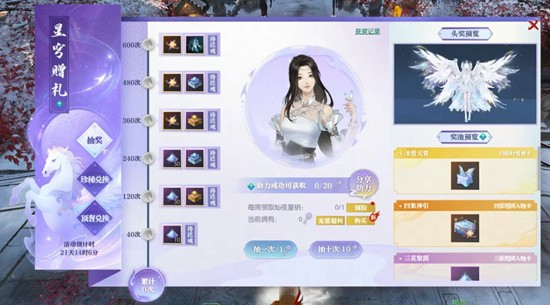 b) 心愿发型自选券:使用后可自选兑换发型·晓雾凝、发型·青萝掩岫、发型·流虹/舞鸿、发型·楹花昼暖、黄金时代宝箱*20。