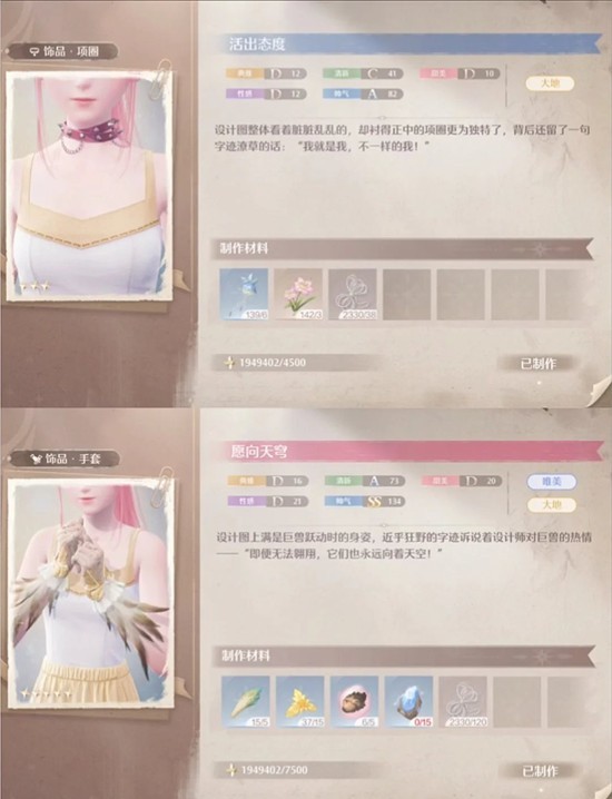 3.项链“活出态度”:完成任务【破破的宝物】获取设计图,图片里放了制作材料,大家可以提前准备