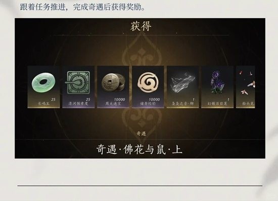 燕云清河完成奇遇任务·佛花与鼠·上奖励:袅袅之音·绑等奖励