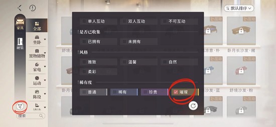 拥有5个稀有度为璀璨的家居。目前有两种方法: