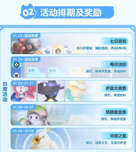 七日签到(1.23起):非凡伊莫蛋、捕捉道具、养成材料。