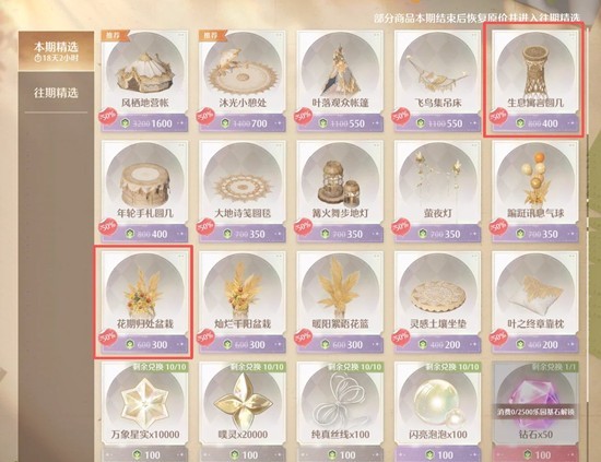 3.家园-构想百货:本期家具各一共需6900乐园基石。